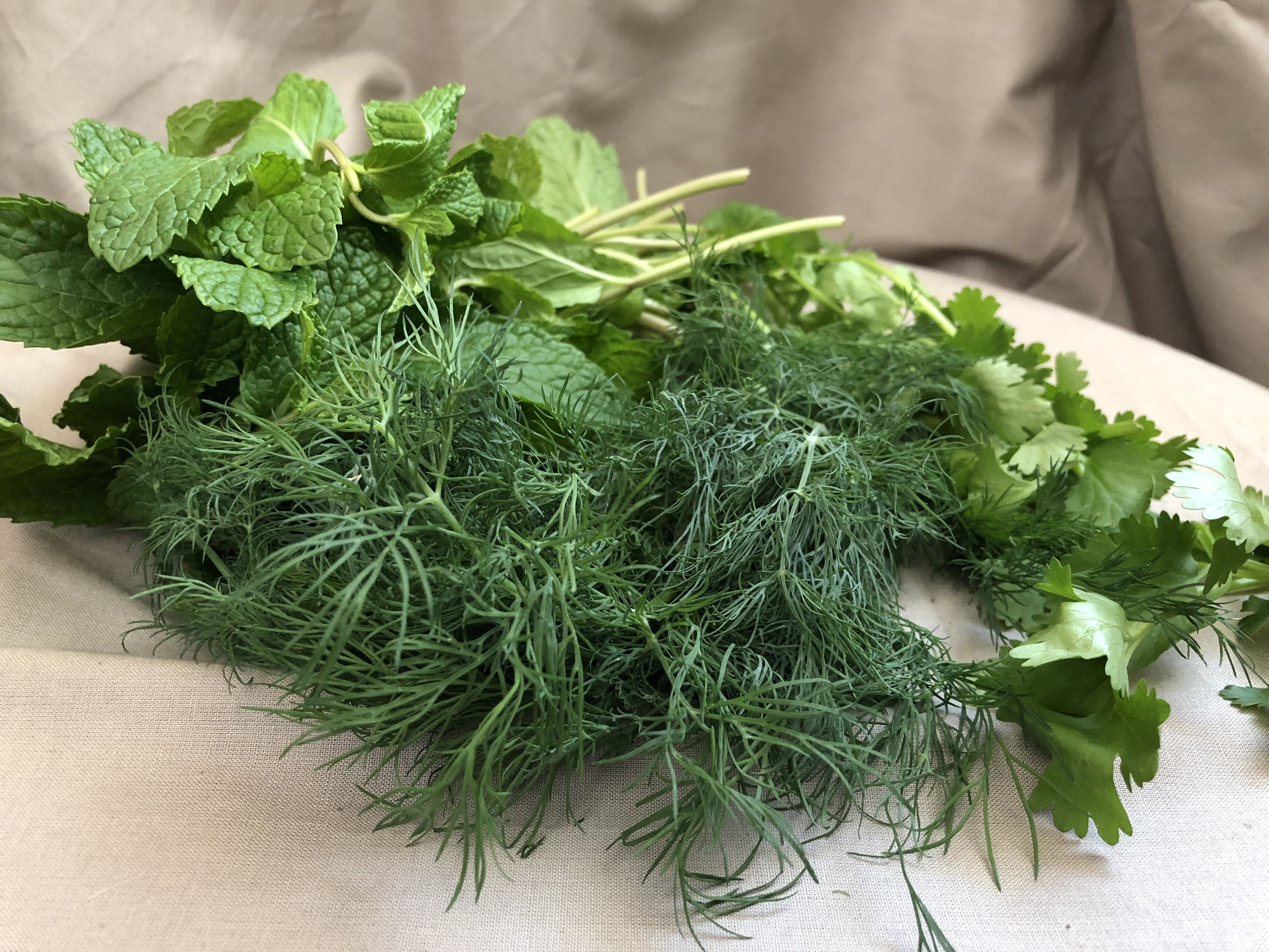 Mint, dill and cilantroWhen introducing new kinds of hay, pellets or vegetables into your rabbit's diet, start gradually. For hay and pellets, transition over a week. At first, offer both by giving small amounts of the new type, increasing the amount until the bunny has completely switched over. With greens, give a small amount (a sprig or two of parsley, or a leaf of lettuce) for a week. If the bunny tolerates it well, you can feed normally. Only try one new food at a time. Introducing two or more different food items at once, risks digestive upset.